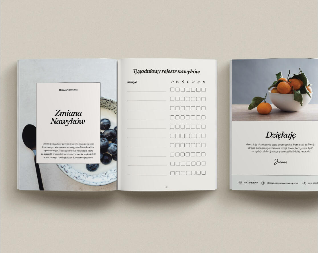Masz dość poradników, które pięknie wyglądają, ale w rzeczywistości niczego nie zmieniają? Ten ebook to zupełnie inna liga - praktyczny zeszyt ćwiczeń, który prowadzi Cię krok po kroku przez proces budowania zdrowych nawyków żywieniowych, tak aby w końcu osiągnąć trwałe efekty.To nie jest zbiór teorii. To proste narzędzie do działania.